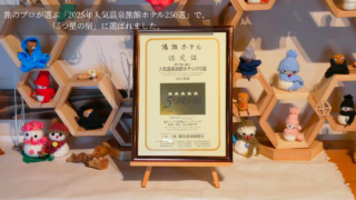 お知らせ 旅のプロが選ぶ「2025年人気温泉旅館ホテル250選」にて「5つ星の宿」を受賞いたしました。