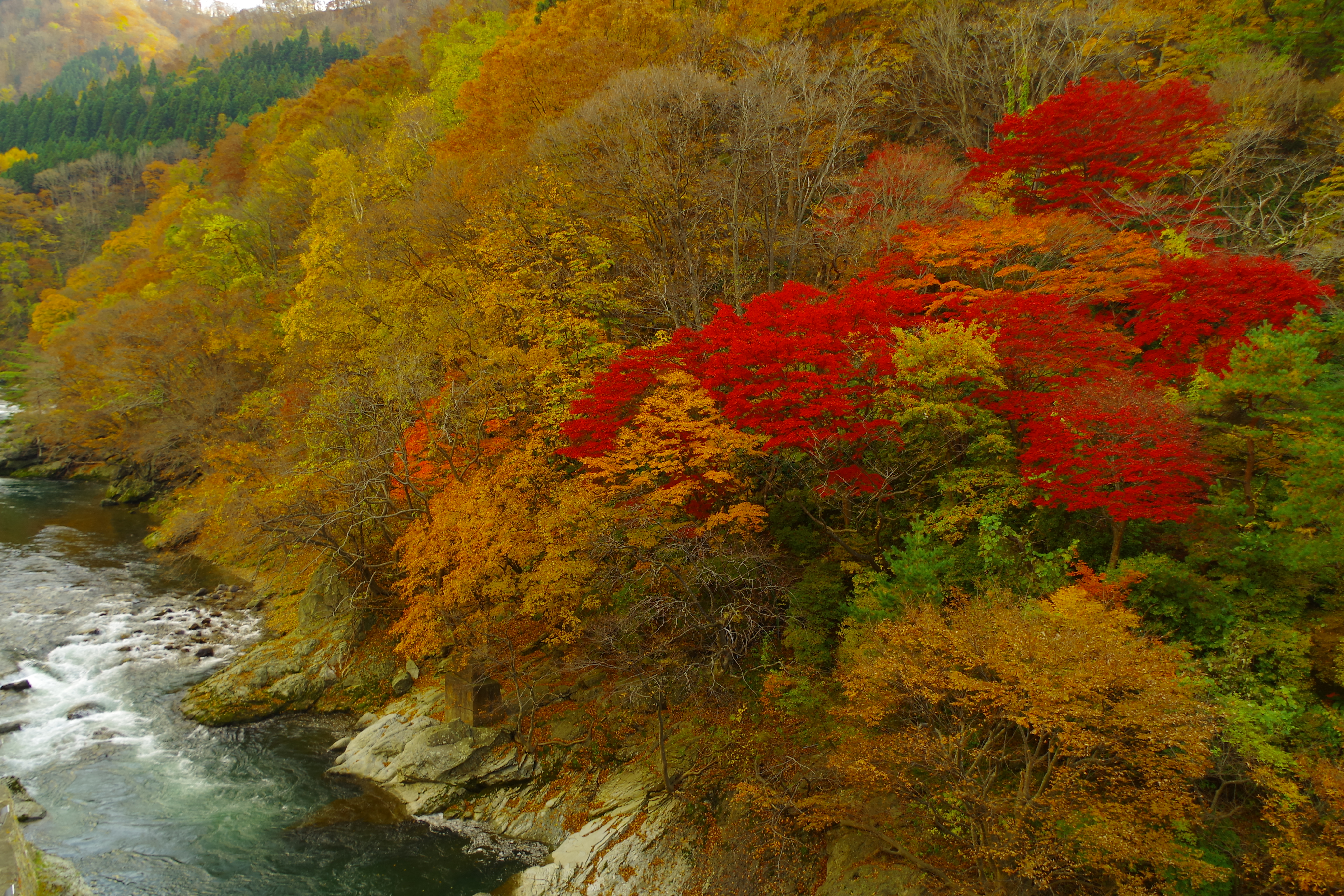 庭園の紅葉が見頃です スタッフブログ Twitter Facebook はてブ Pocket LINE コピー 2018.11.13 2018.11.07 いつも湯瀬ホテルスタッフブログをご覧の みなさま、こんちには♪ つい先日鹿角では初雪を観測しました! そんな中、当館自慢の庭園の紅葉が綺麗に色づいています! 紅葉は今がピークで真っ赤に染まっています。 別館の「美観の和室」からの眺めが美しい! 米代川とのコントラストも綺麗ですよ♪ 当館自慢の自然庭園はこんな感じ…↓ とっても綺麗ですよね♪ そろそろ紅葉も終わりを迎える時期です。 落葉してしまう前にぜひ一度ご覧ください! ご来館お待ちしております!!