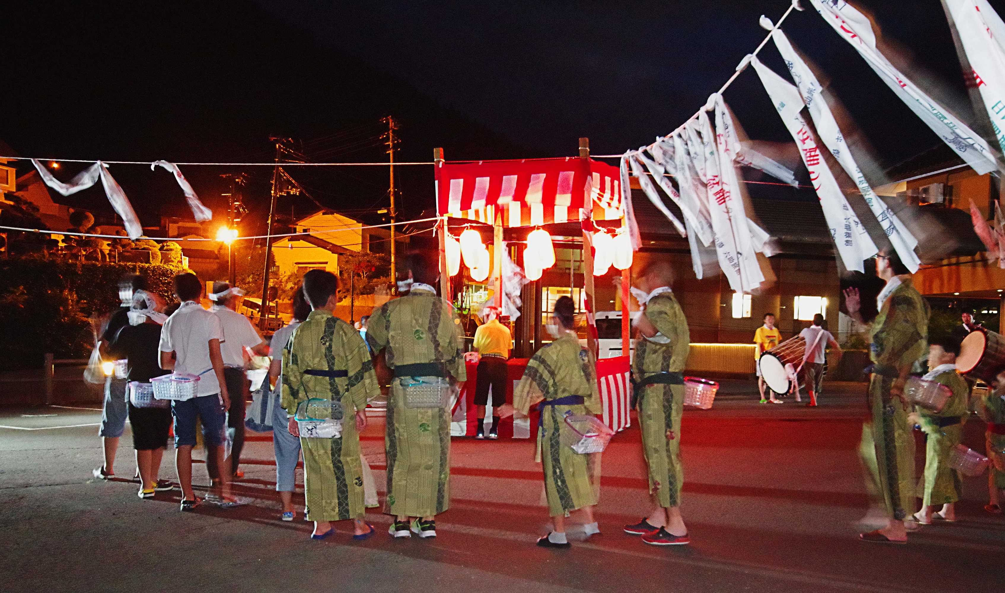 ちなみに上から吊り下げている手ぬぐいは踊りに参加すると貰えますよ♪