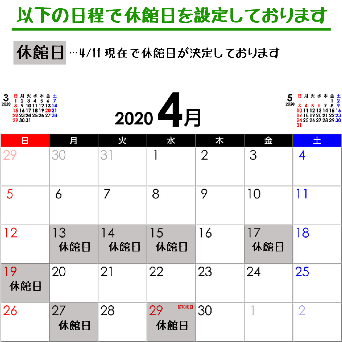 新型コロナウイルスの影響を受け、4月に「休館日」を