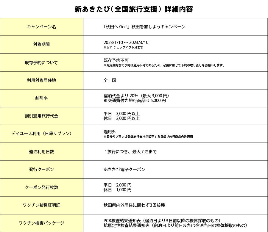さて、2023年1月10日より、全国旅行支援(秋田県版)が再開されます。