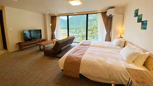 | 2021年10月7日 本館11F・露天風呂付き洋室 新設オープン 湯瀬の緑豊かな山並みと美しい渓流を一望できる露天風呂付き洋室を、本館11階に新設しました。 新設記念として、期間限定モニタープランをご提供させていただきます。 詳しくはこちらをご覧ください この機会に新設された露天風呂付き洋室をお楽しみください。 |